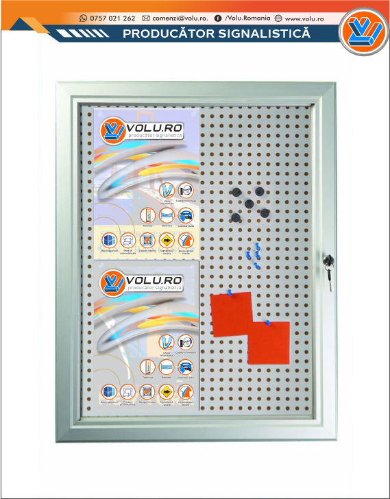 Poate fi folosit la afișarea atât cu magneți cât și cu piuneze, având o placă de metal cu găuri la suprafață, cât și o placă de plută sub cea metalică.
