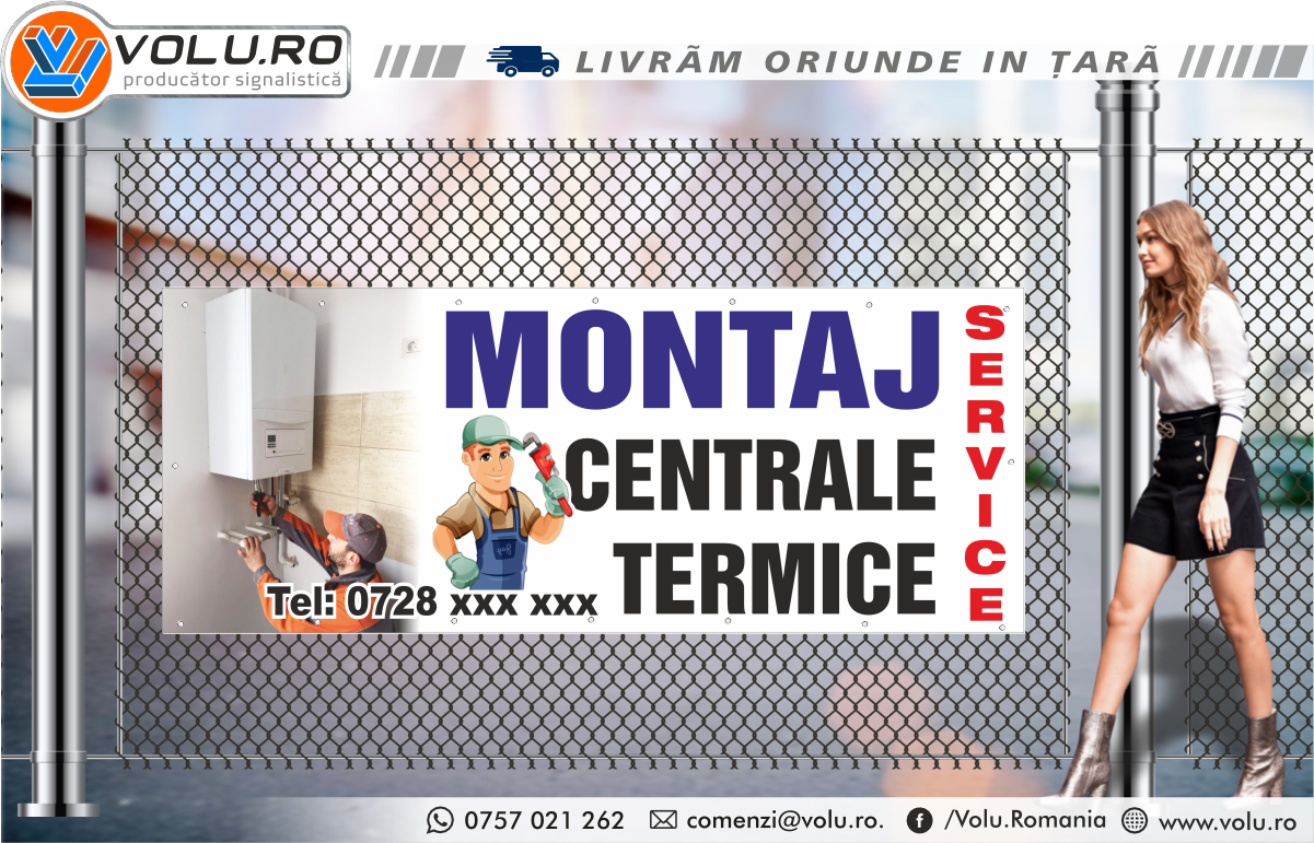 Banner Print Digital cu Capse personalizat Montaj Centrale Termice – Calitate Superioară pentru Promovare Eficientă