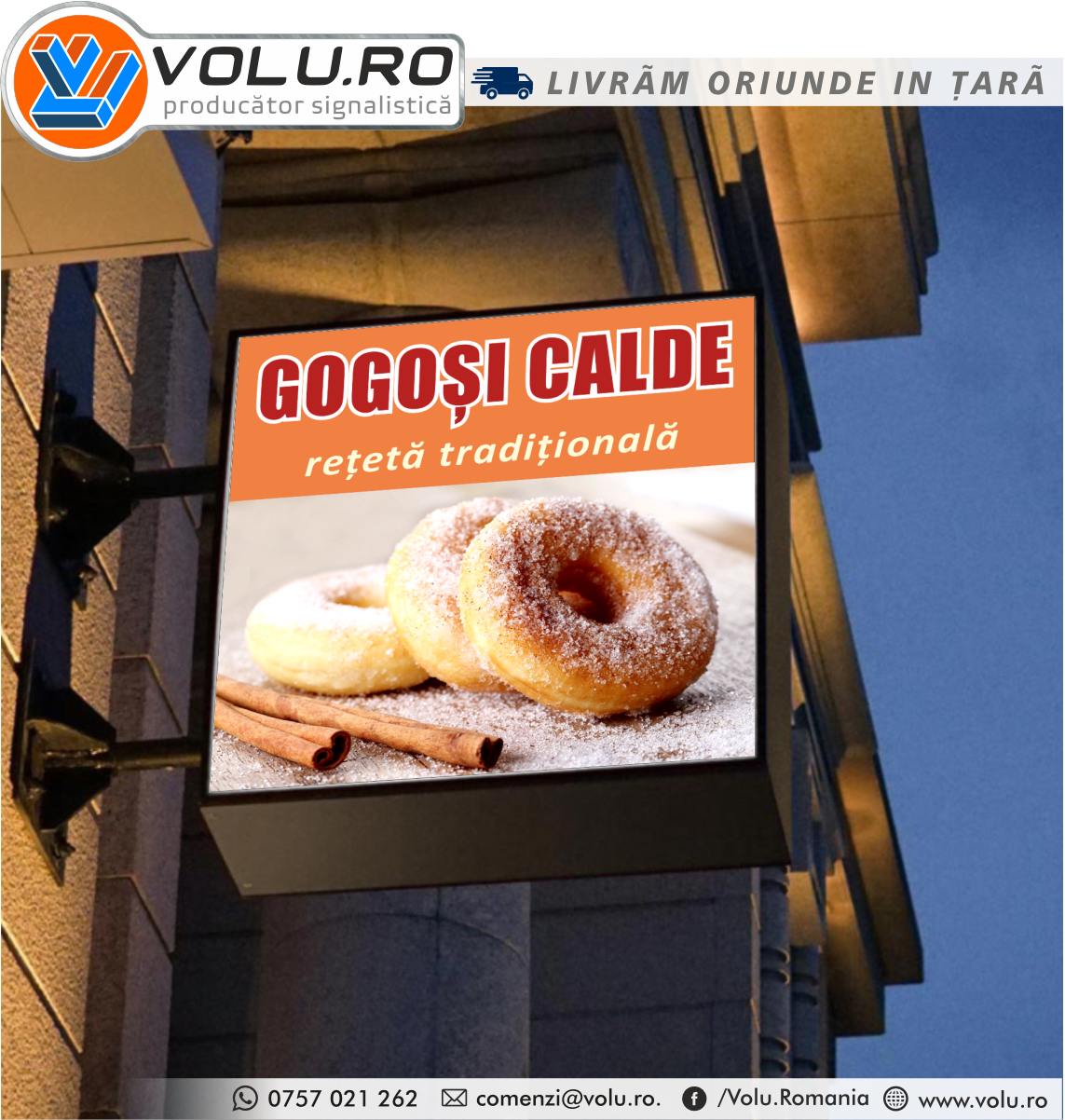 - Structură și Materiale: Casetă este realizată dintr-un profil de aluminiu rezistent la coroziune și fețe din plexiglas (stiplex) de înaltă calitate, care protejează grafica de razele UV și intemperii.