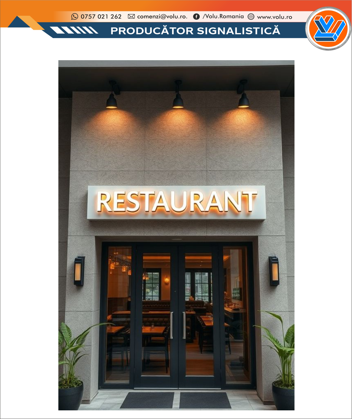 Literele Volumetrice Iluminate LED - personalizat Restaurant, reprezintă una dintre cele mai eficiente și elegante forme de semnalistică publicitară, utilizate pentru a evidenția numele sau logo-ul unei companii, într-un mod vizibil, modern și profesionist. Au ca scop de a atrage atenția, crește vizibilitatea și a da un aspect premium unui brand, magazin, sediu de firmă sau eveniment fiind o metoda moderna de promovare.