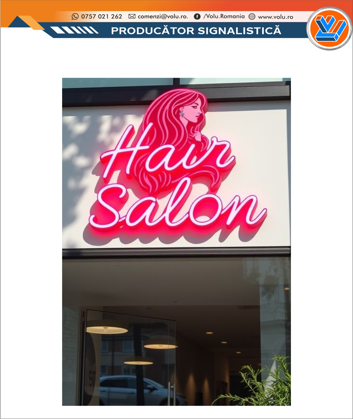 Literele Volumetrice Iluminate NEONFLEX - personalizat Hair Salon, reprezintă una dintre cele mai eficiente și elegante forme de semnalistică publicitară, utilizate pentru a evidenția numele sau logo-ul unei companii, într-un mod vizibil, modern și profesionist. Au ca scop de a atrage atenția, crește vizibilitatea și a da un aspect premium unui brand, magazin, sediu de firmă sau eveniment fiind o metoda moderna de promovare.