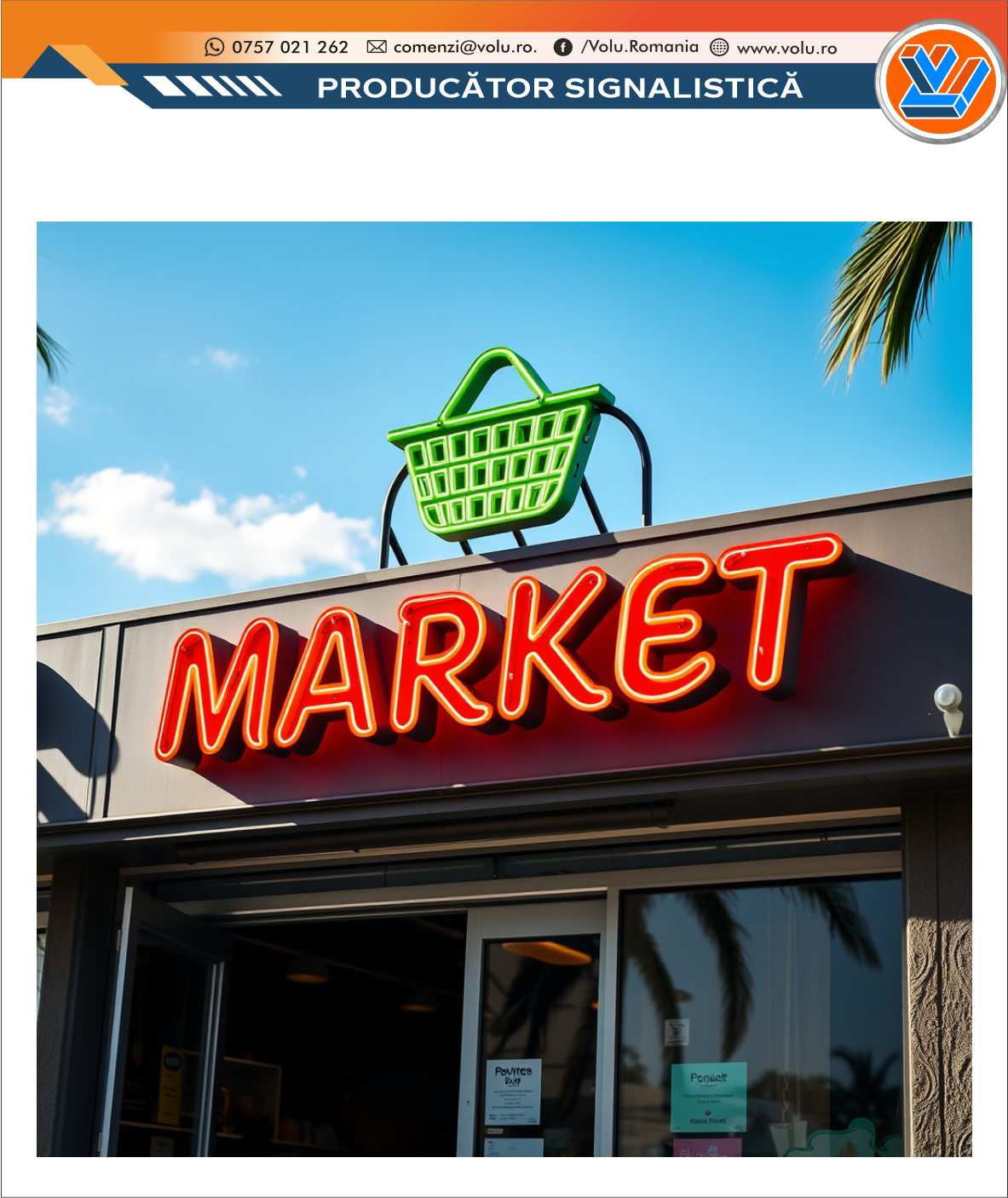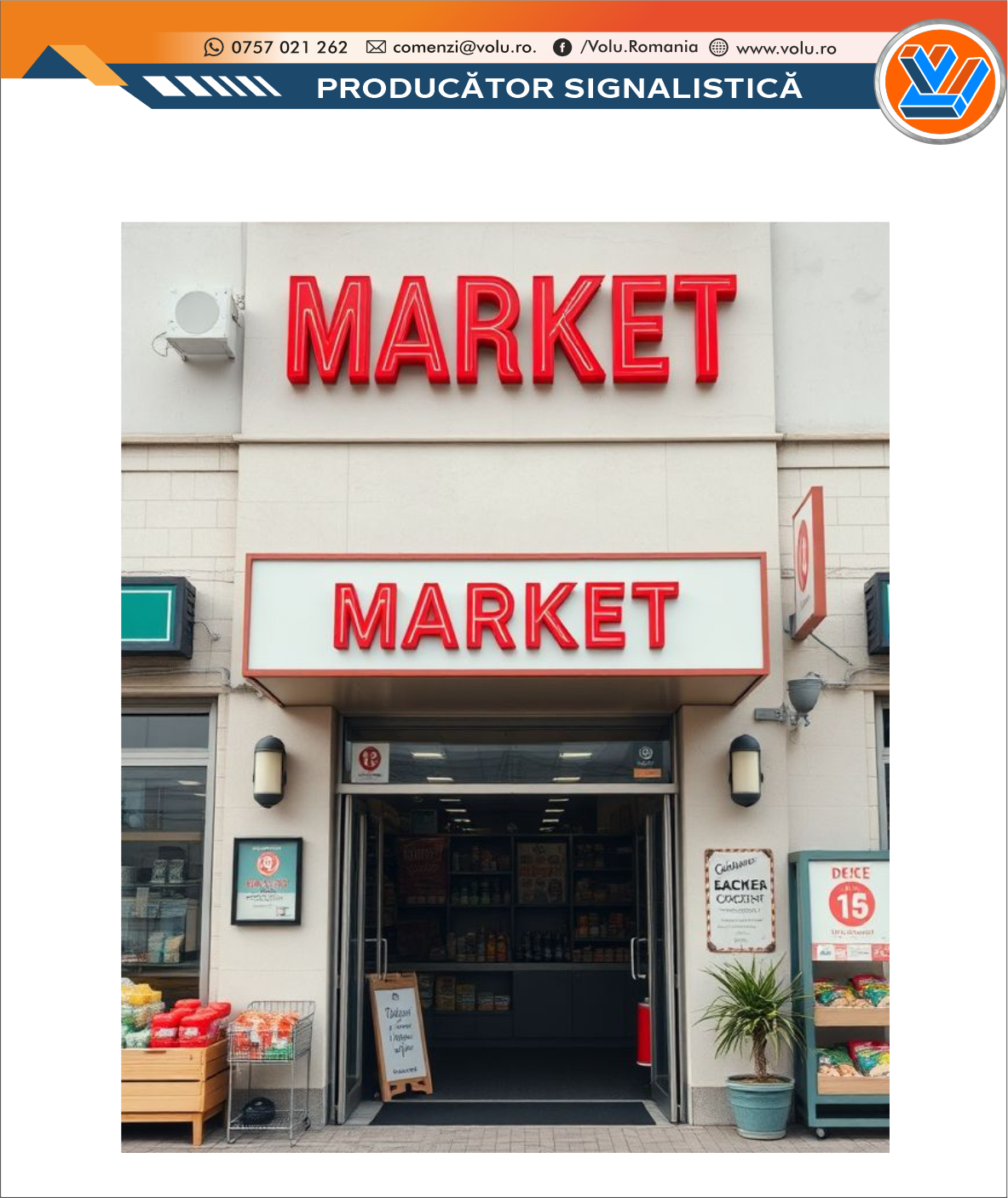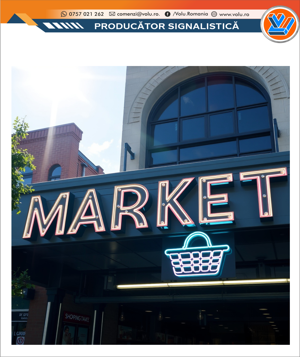 Literele Volumetrice Iluminate NEONFLEX - personalizat Market, au ca scop de a atrage atenția, crește vizibilitatea și a da un aspect premium unui brand, magazin, sediu de firmă sau eveniment fiind o metoda moderna de promovare.