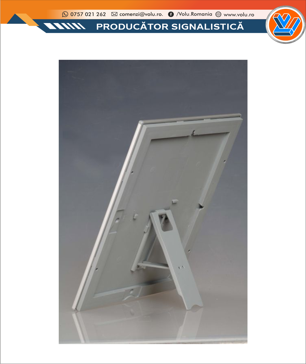 Rama click OPTI poster argintie dimensiune profil 25/45mm, format A4 (210x297mm), cu picior