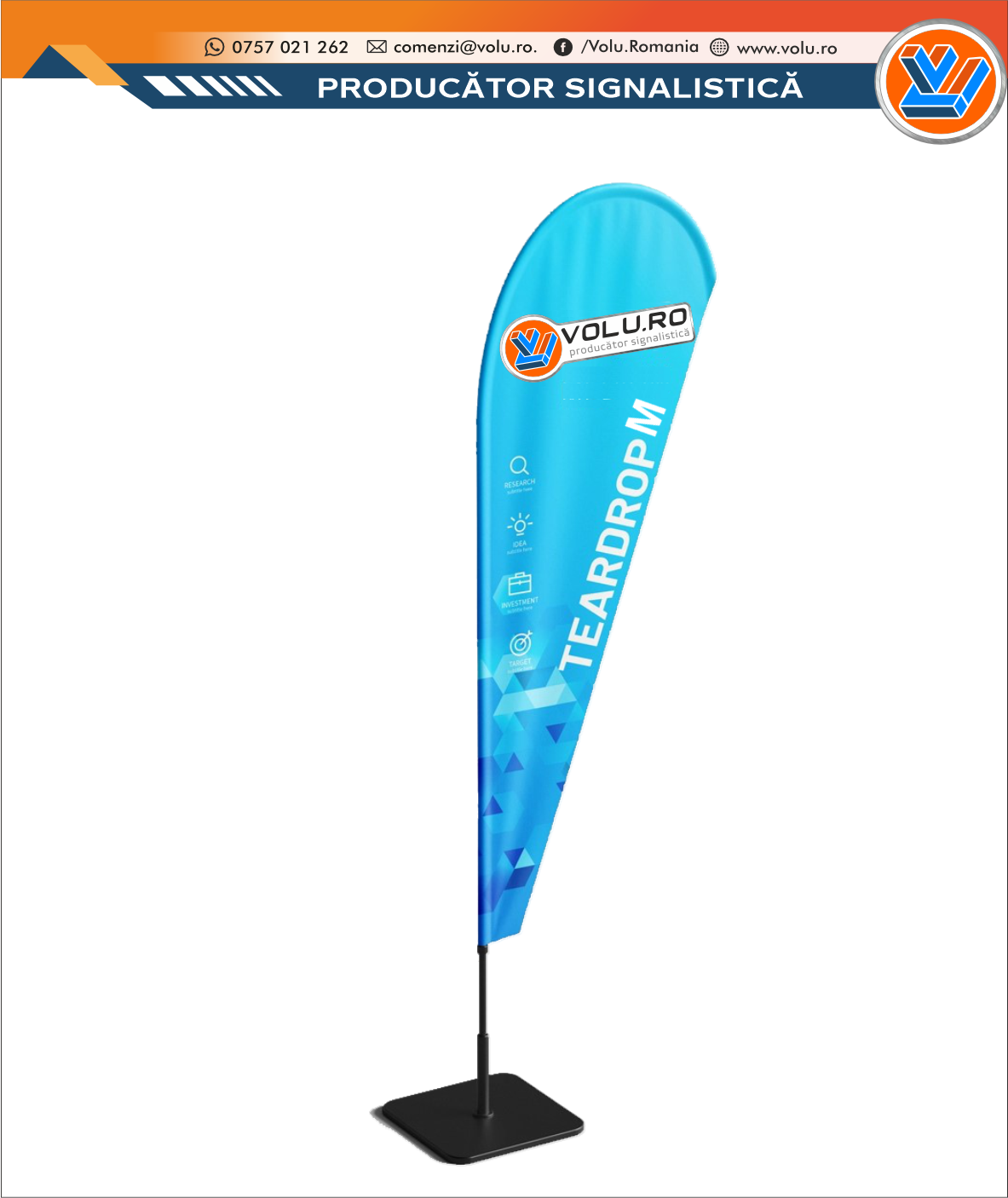 Steag tip Lacrima personalizat dimensiune M 100x220cm, inaltime totala: 260cm